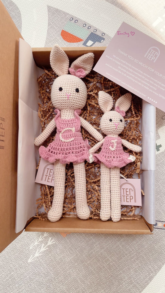 Personalized Big Sister & Little Sister Bunnies - Mauve
