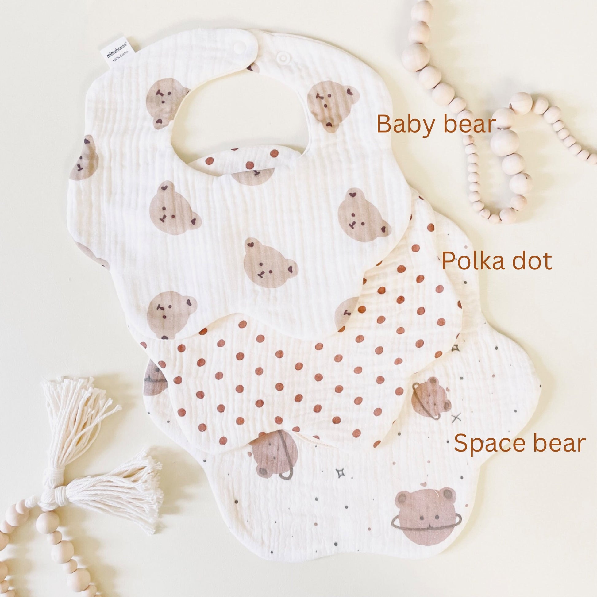 Our muslin bibs are an easy, practical and trendy solution to drooling/teething babies.