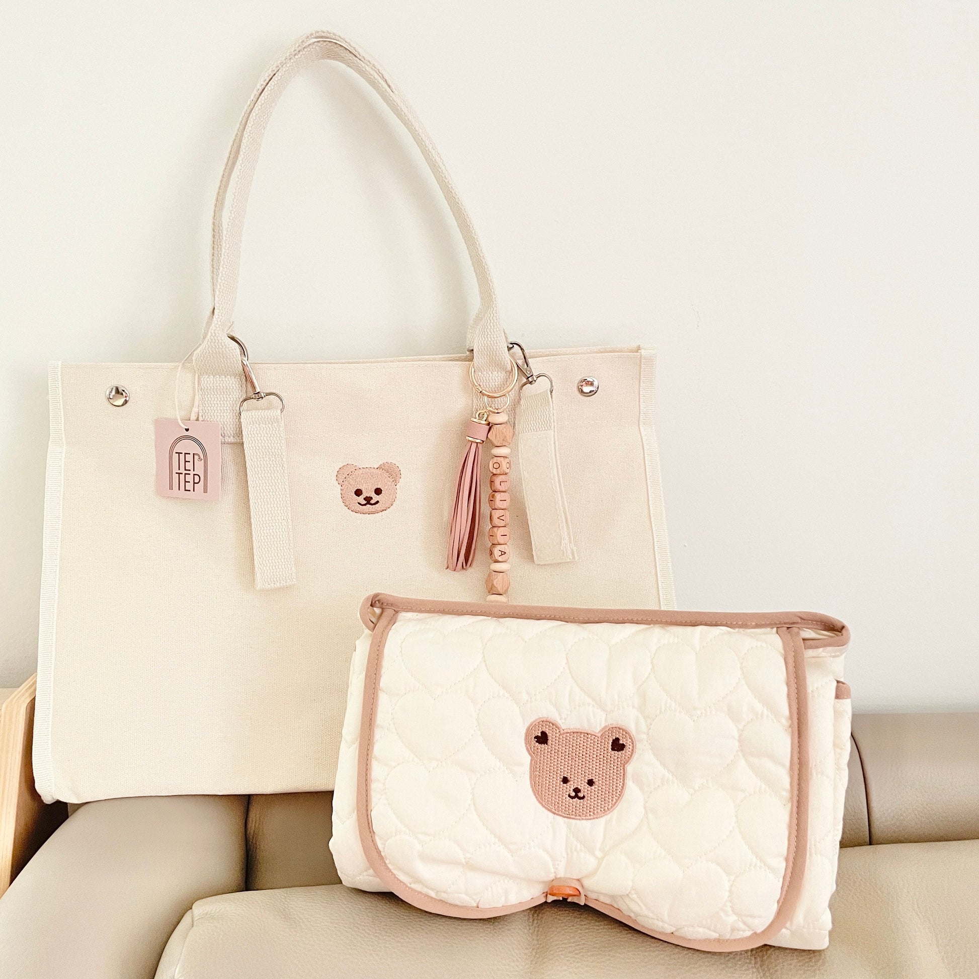 <Bear Canvas Diaper Bag & OPTIONAL Personalized Bag Charm>