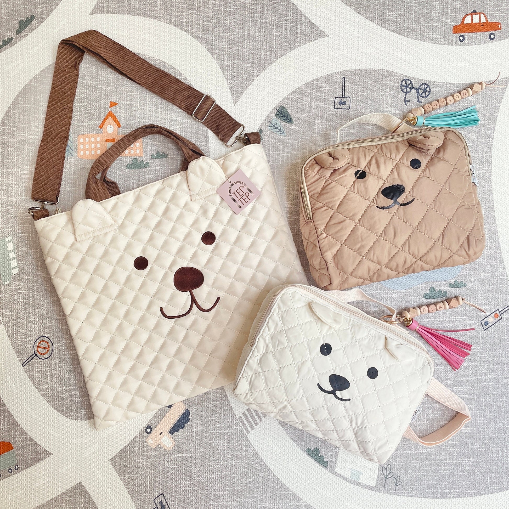 <Quilted Teddy Bear Diaper Bag & OPTIONAL Personalized Bag Charm>