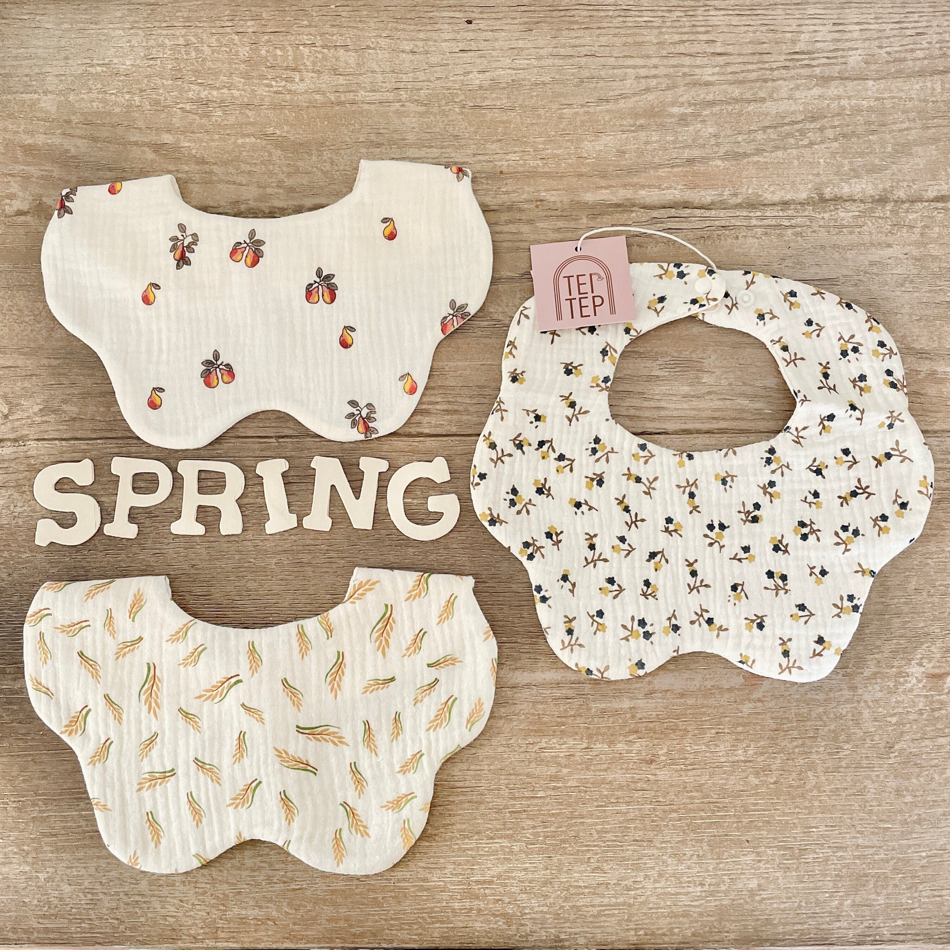 Our muslin bibs are an easy, practical and trendy solution to drooling/teething babies.