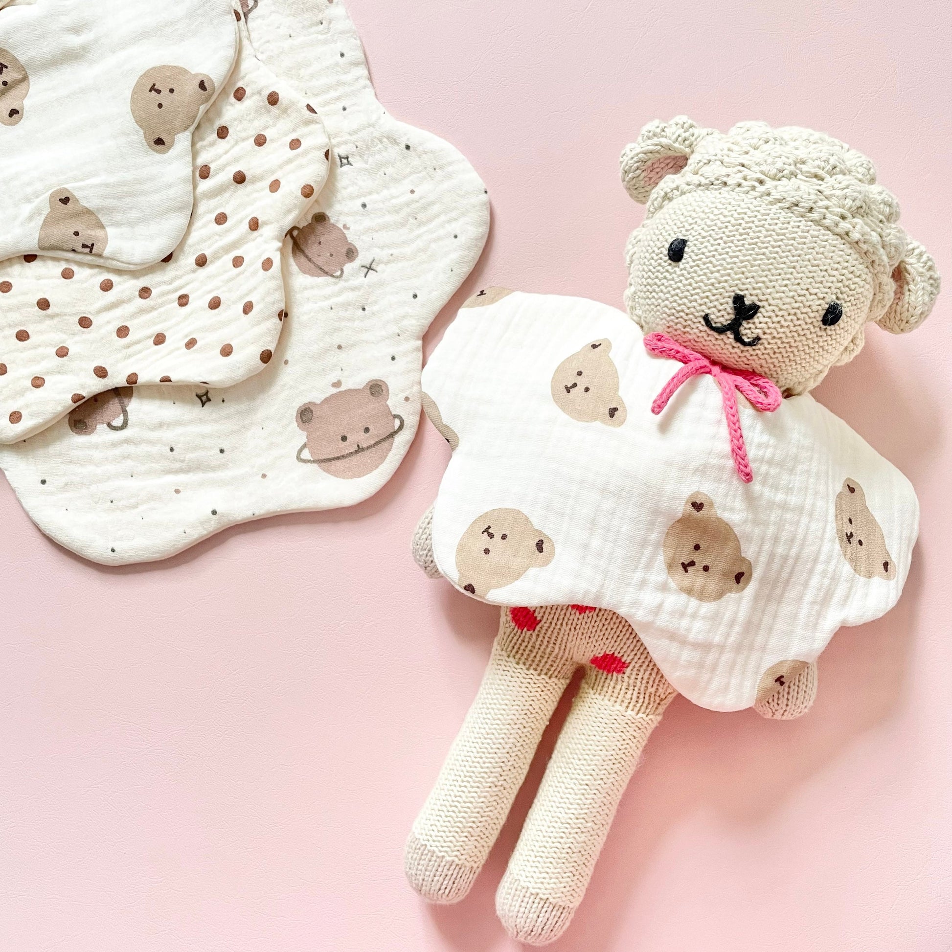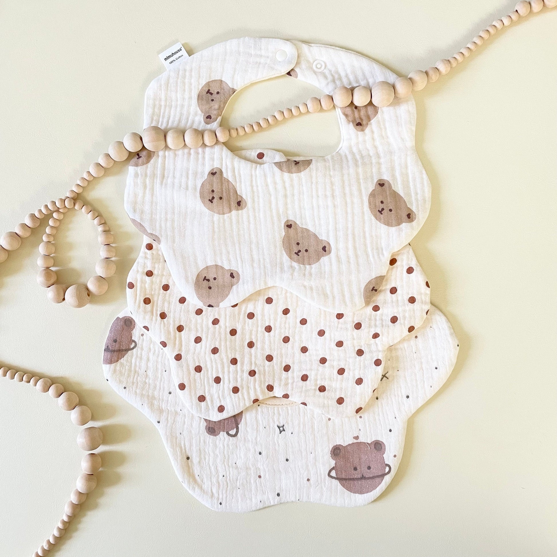 Our muslin bibs are an easy, practical and trendy solution to drooling/teething babies.