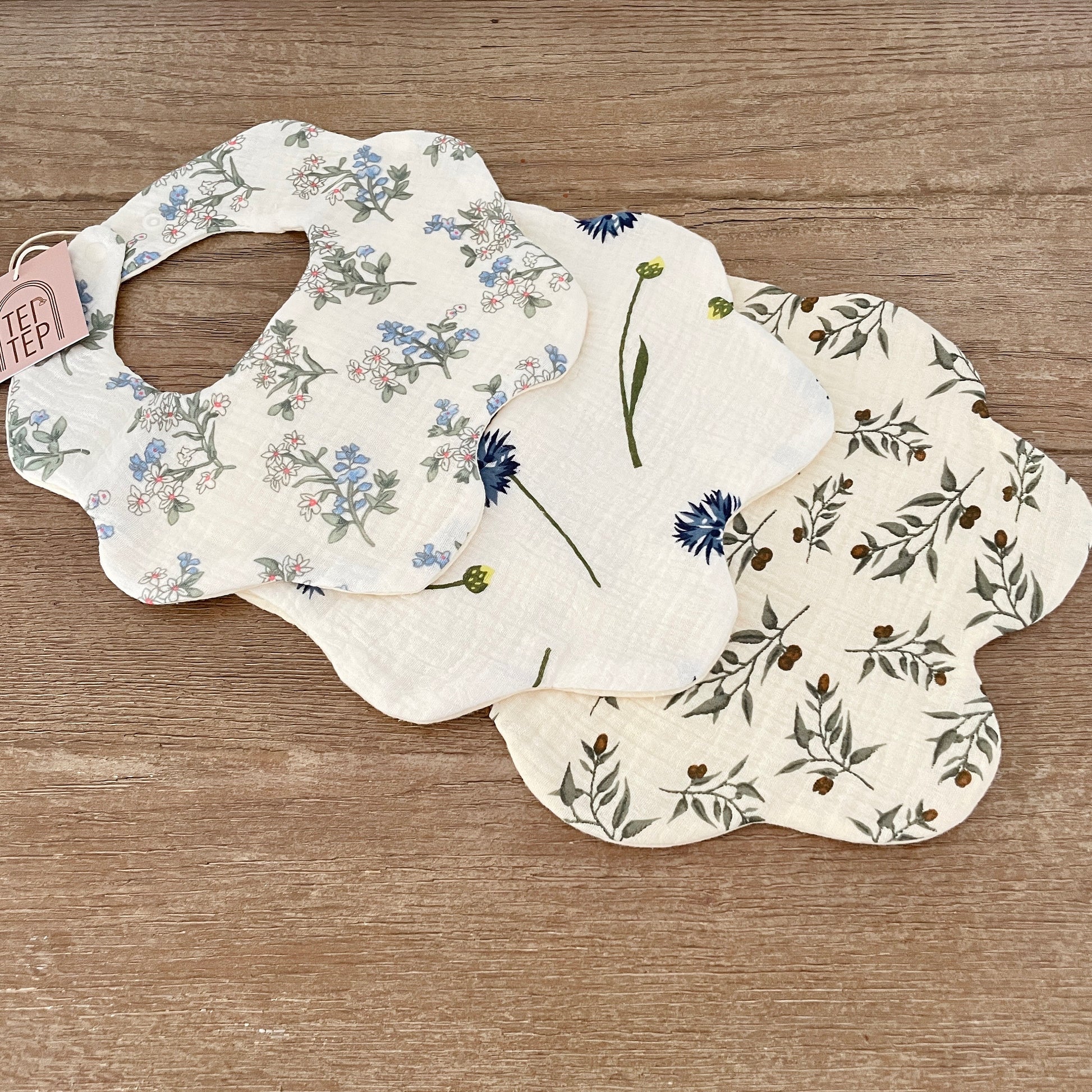 Our muslin bibs are an easy, practical and trendy solution to drooling/teething babies.